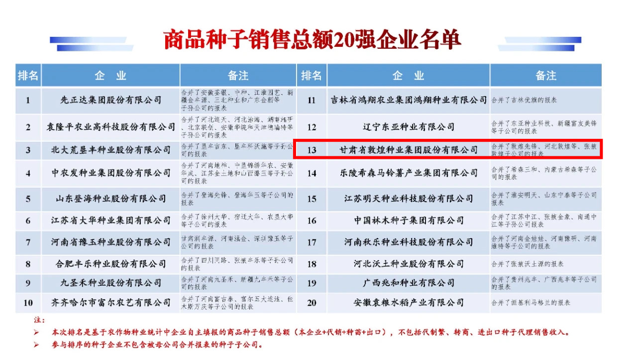 敦煌種業(yè)被第十六屆中國國際種業(yè)博覽會暨第二十一屆全國種子信息交流與產(chǎn)品交易會評為雜交玉米商品種子銷售總額10強企業(yè)、商品種子銷售總..[2024-11-04]